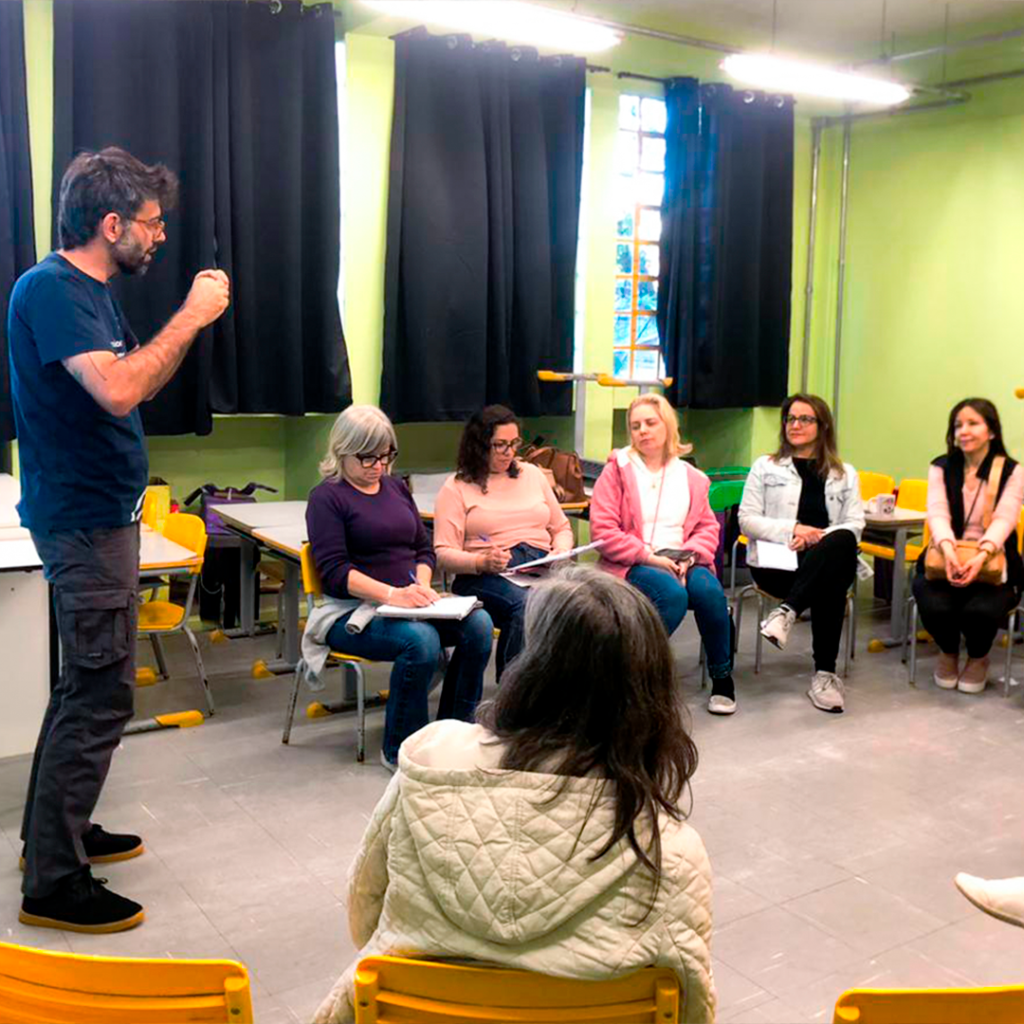 As atividades reuniram educadores, coordenadores e diretores de escolas como a EMEF João Carlos D’Ávila Paixão Côrtes, EMEF Ana Íris do Amaral e EMEF Gilberto Jorge da Silva, promovendo reflexões sobre o papel da escuta e da presença no processo de ensino. Foram realizadas dinâmicas práticas, como exercícios de atenção e foco e observação das paisagens sonoras do entorno escolar, experiências que ajudaram os participantes a explorar novas formas de acolher e engajar os estudantes em sala de aula.
